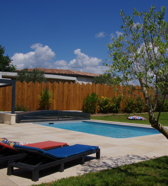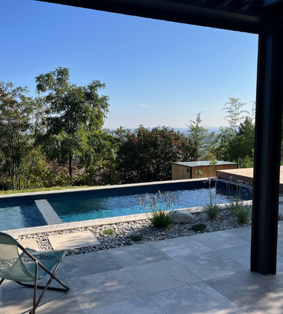 Les matériaux restent sobres et raffinés : béton lissé, acier, bois travaillé, pierre claire ou sombre. Ils s’accordent au végétal avec précision et soulignent la modernité du jardin, pour un espace clair, élégant et maîtrisé.