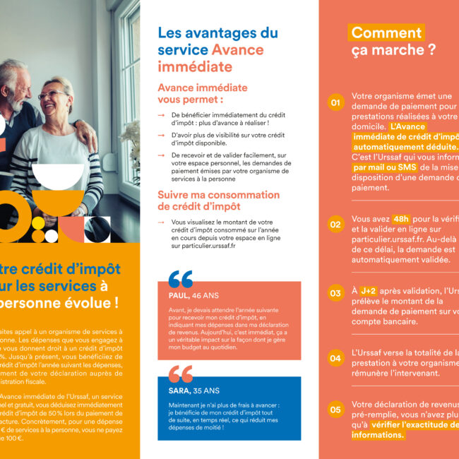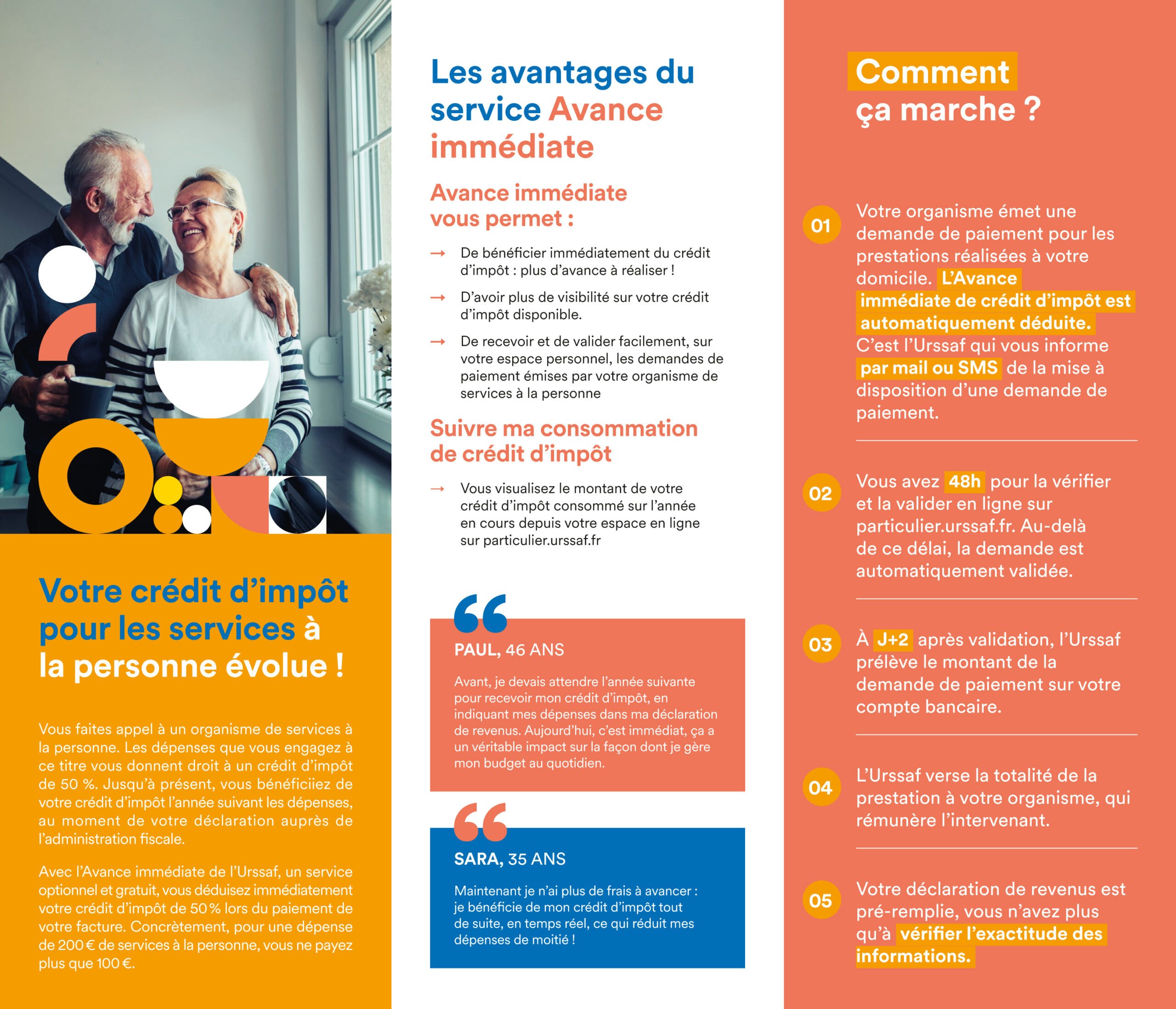 Depuis la mise en place du dispositif Avance immédiate géré par l’URSSAF, vous pouvez profiter de cet avantage sans attendre la déclaration annuelle.