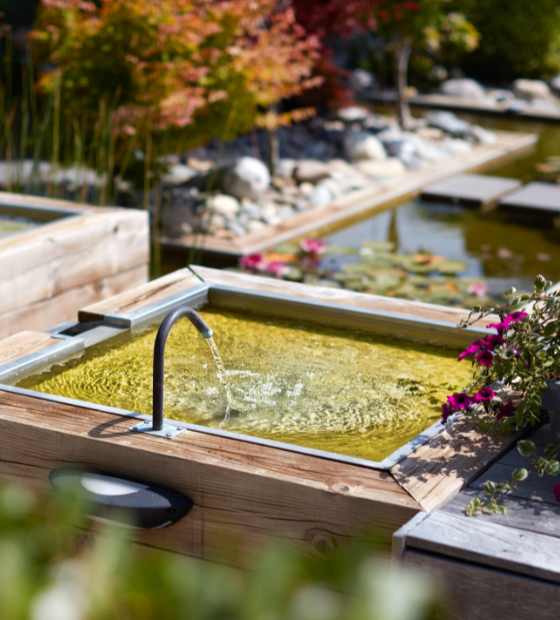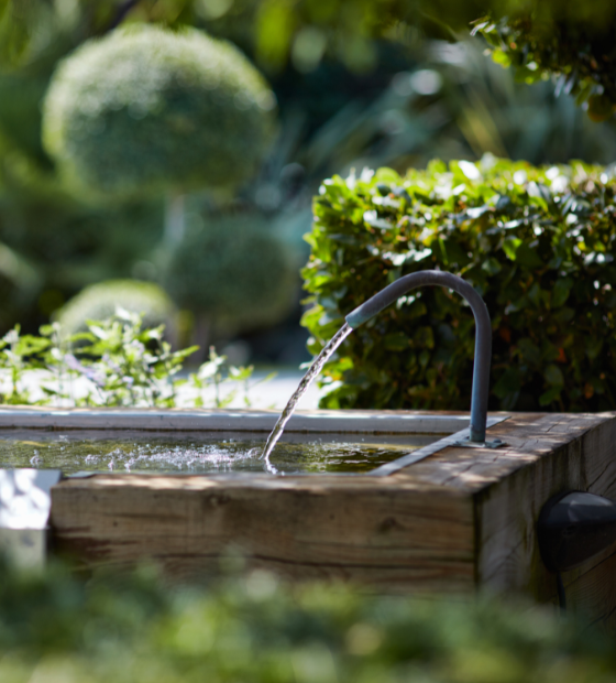 Le jardin « Au Fil de l’Eau » est conçu comme un parcours fluide et apaisant, où l’eau guide le regard et rythme l’espace. Pensé comme un lieu de sérénité, il associe la douceur de l’eau, la force de la pierre et la richesse du végétal pour créer une harmonie naturelle et équilibrée, propice à la contemplation et au ressourcement.